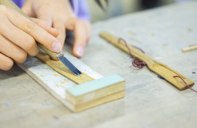 アイヌの民族楽器ムックリ作り。