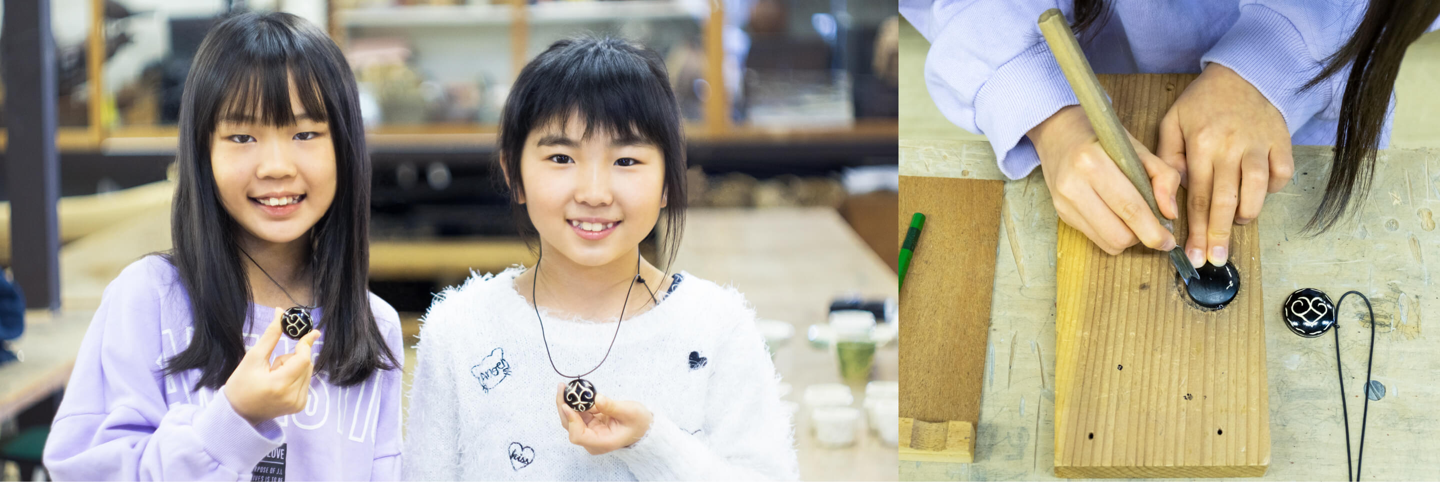 紋様を掘り込んだ自分だけのペンダント。
